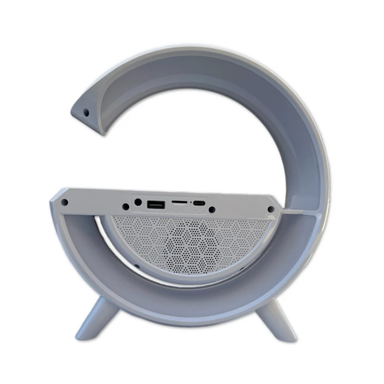 دارای شارژ بی سیم چند منظوره دارای بلندگو های یکپارچه همراه با نور LED دارای پایه رومیزی سازگار با گوشی های هوشمند دارای نورRGB LED